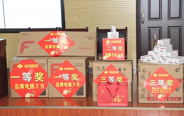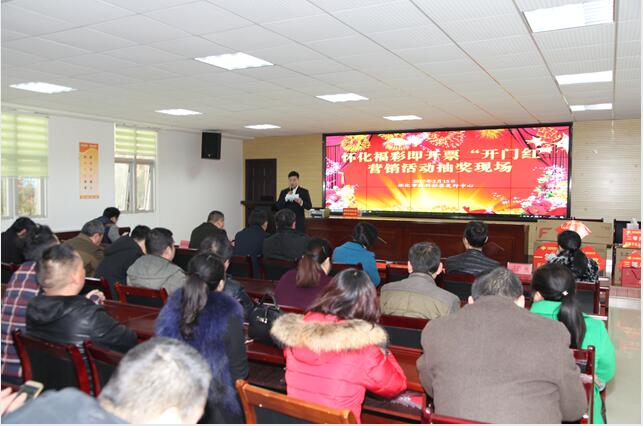 2月15日,怀化福彩在市民政局2楼会议室进行即开票“开门红”营销活动抽奖,共产生2个一等奖(电脑2台)、2个二等奖(手机2台)、221个三等奖(黑茶50个,保温杯100个,刮刮乐礼包71个)。加上刚好刮刮乐“闪耀钻石”新票上市,怀化福彩网点业主刮刮乐订票和销售热情被点燃,很多业主一次性订票5万元、3万元、2.5万元!抽中手机的43123117站点业主李老板表示:“闪耀钻石上市有很多活动,肯定会吸引彩民购彩,因此多订一点,防止没有票啊!而且我的刮刮乐展示箱很大,需要多点票!”。