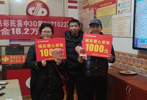 福彩3D第2021022期开奖,怀化市新晃县43129082投注站彩民合买喜中3D大奖18.2万元。中了大奖,合买的这几个彩民除了忙着兑奖,还要忙着和业主一起寻找资助对象,因为从2021年1月起,为了充分践行福彩“扶老、助残、救孤、济困”的发行宗旨,彩民单人单期中奖超过8万元,中奖站点业主或彩民均可推荐身边的残疾、贫困参与资助活动。这一利好政策一出,受到广大业主和彩民一致好评。这不,1月26日,经过大家推荐和管理站审核,确定晃州镇一个聋哑人和一个因病致贫的贫困家庭作为资助对象,每个资助1000元,并在投注站举行了公益金发放仪式。