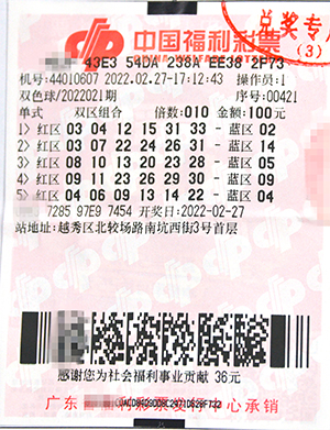 6651万元大奖中奖彩票